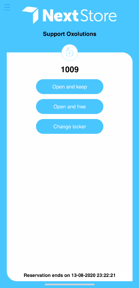 Use the mobile app to request a new locker, open your personal locker and end the locker usage.