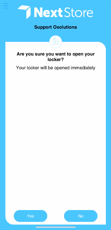 On opening your locker, the app will ask for a confirmation. This prevents accidentally opening your locker.